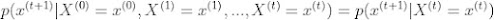 So it’s a stochastic method with one peculiarity: knowing the current state is as good as knowing the entire history. In mathematical terms, we say that a stochastic process is Markovian if X(t+1) conditioned to x(1), x(2),…x(t) only depends on x(t):